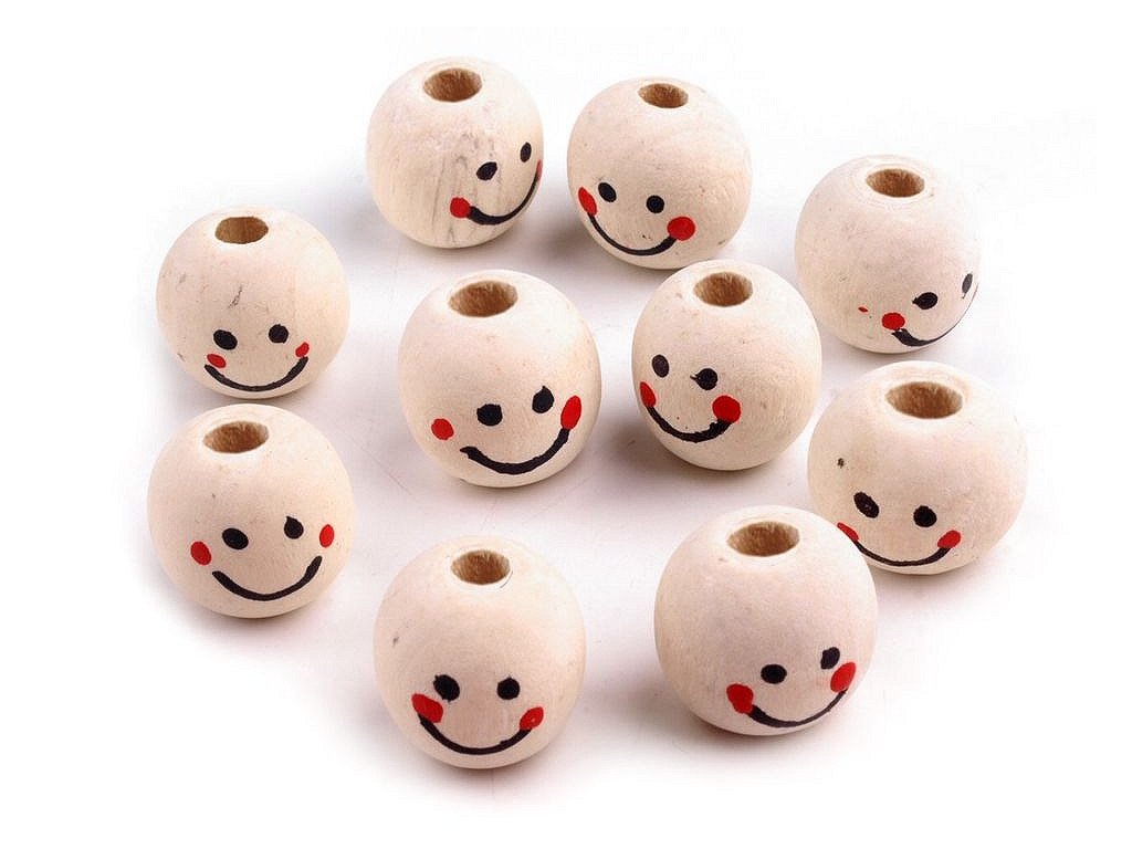 Dřevěné korálky s ručně malovaným obličejem se skvěle hodí na macramé andělky nebo panáčky..