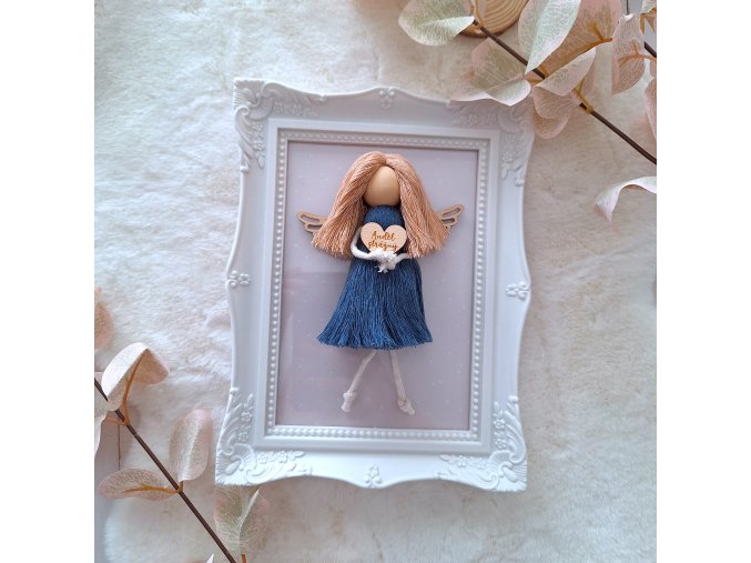Velikost Andělky je 15 cm a velikost rámečku 22 cm x 17 cm.